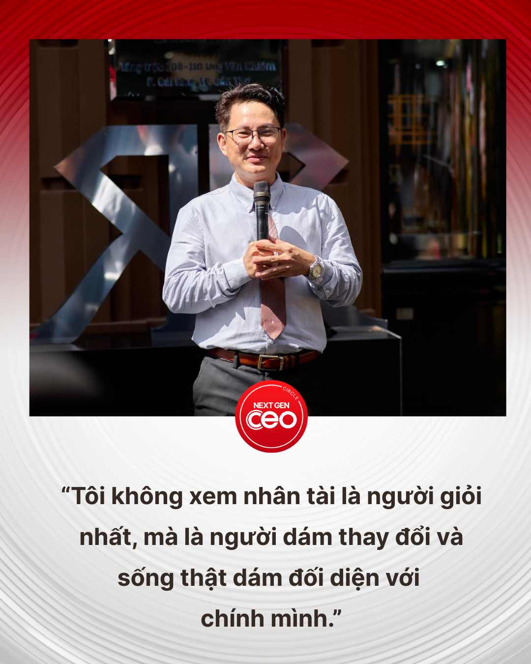 Với nhân tài, anh không định nghĩa họ bằng năng lực, mà bằng sự can đảm: “Tôi không xem nhân tài là người giỏi nhất, mà là người dám thay đổi và sống thật dám đối diện với chính mình.”