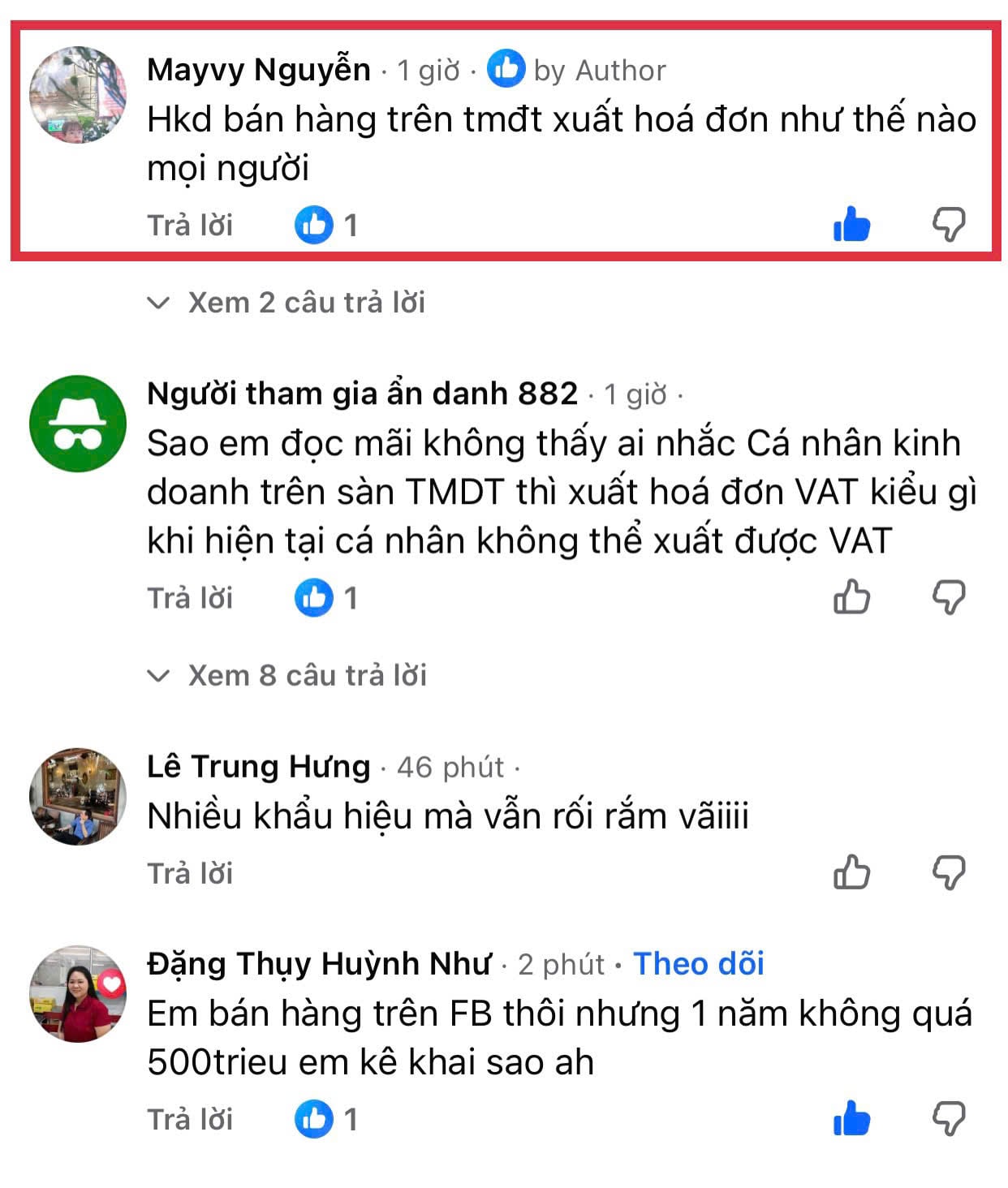 Một độc giả chia sẻ rằng, thuộc hộ kinh doanh nhóm 2 theo phân loại của cơ quan thuế (doanh thu từ 500 triệu đồng – 3 tỷ đồng), bán hàng trên sàn Shopee và Tiktok, đã được 2 sàn TMĐT này kê khai, khấu trừ và nộp thuế. Tuy nhiên, vị này vẫn thắc mắc mình cần xuất hoá đơn như thế nào để đúng quy định.